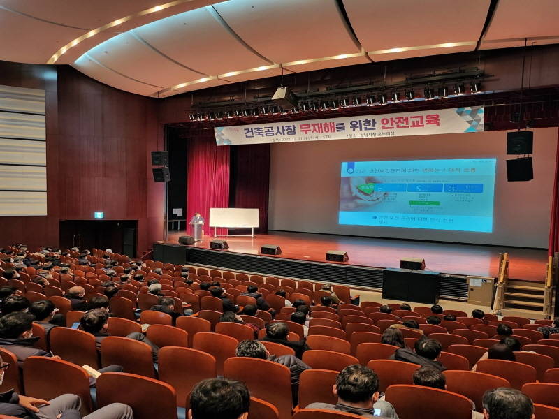 성남시는 건축공사 현장의 무재해를 위해 관계자 250명을 대상으로 12월 21일 시청 온누리에서 ‘중대재해 예방 안전교육’을 했다.