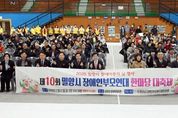 한방통신사 신유철기자 기자 | 경남 밀양시는 21일 밀양문화체육회관에서 (사)장애인부모연대 밀양시지회(회장 황순옥) 주관으로 ‘제10회 장애인부모연대 한마당 대축제’를 개최했다고 밝혔다. 이번 행사는 장애아동과 발달장애인에 대한 사회적 인식을 높이고, 장애인과 그 가족들에게 희망과 용기를 전하기 위한 ‘희망 프로젝트’의 일환으로 마련됐다. 행사에는 기관·단체 관계자, 장애인과 가족, 자원봉사자 등 300여 명이 참석했다. 1부 기념식은 △식전 공연 △유공자 표창 △장애인 미술대회 시상 △내빈 소개 △대회사 △격려사 △축사 순으로 진행됐다. 이어진 2부에서는 체육대회, 노래자랑 등 참여형 프로그램이 진행돼 함께 어울리는 시간을 가졌다. 특히 이날 행사에서는 ‘장애인 미술대회’ 시상식이 함께 열렸다. 대상 1명, 최우수상 1명, 우수상 2명, 협회상 1명, 장려상 4명 등 총 9명이 수상의 영애를 안았다. 이번 미술대회는 이달 초 지역 내 초·중·고 특수교육 대상 학생과 성인 발달장애인을 대상으로 ‘추석’을 주제로 공모를 진행했다. 황순옥 지회장은 “부모의 힘으로 세상을 바꾸자는 우리 단체의 슬로건처럼