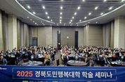 한방통신사 신유철기자 기자 | 경상북도는 29일 안동 그랜드호텔에서 ‘2025 경북도민행복대학 학술 세미나’를 성공적으로 개최했다. 이번 세미나는 명예도민 석·박사과정 재학생 및 캠퍼스 관계자 등 160여 명이 참석해 도민 주도형 연구 성과를 공유하고, 평생학습을 통한 지역문제 해결 가능성을 논의하는 장이었다. 세미나는‘함께하는 평생학습: 전환과 상생’이란 특강 주제를 시작으로 명예도민 석사·박사과정 재학생들이 직접 수행한 캠퍼스별 주제 연구와 프로젝트 결과를 발표했다. 순서대로, 동부캠퍼스(석사_선린대학교)가 ‘저출생에 따른 인구 감소 해소 방안’, 서부캠퍼스(석사_경북보건대학교)가 ‘경북의 이민정책과 인구구조 변화’의 연구 자료를 발표했다. 이어, 남부캠퍼스(석사_대경대학교)는 ‘경상북도 노인돌봄 NEW 정책 패러다임’을 제시했으며, 북부캠퍼스(석사_국립경국대학교)는 ‘지역사회 신중년 세대의 인구 유출 방지를 위한 인구 유입·정착 방안’을 공유해 눈길을 끌었다. 또, 동남부캠퍼스(박사_대구대학교)가 ‘사회과학 이론을 접목한 능동과 참여의 평생교육-마을만들기 프로젝트 학습사례’, 서북