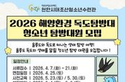 한방통신사 신태공 기자 | 천안시청소년재단 산하 천안시태조산청소년수련관은 지역 청소년을 대상으로 ‘2026 해양환경 독도탐방대’ 참가자를 모집한다고 7일 밝혔다. 이번 프로그램은 청소년들이 울릉도와 독도의 자연환경을 직접 체험하며 해양 생태계에 대한 이해를 높이고 영토의 소중함을 인식할 수 있도록 기획됐다. 모집 대상은 천안시에 거주하거나 관내 학교에 재학 중인 2008~2013년생 청소년 12명이다. 신청 기간은 7일부터 오는 21일까지이며, 참가를 희망하는 청소년은 네이버 폼을 통해 접수하면 된다. 탐방대는 서류 접수와 면접, 사전교육을 거쳐 선발되며, 울릉도·독도 현장 탐방은 오는 6월 4일부터 6일까지 2박 3일간 실시된다. 자세한 사항은 천안시태조산청소년수련관(041-566-0179)으로 문의하면 된다. 김응일 천안시청소년재단 대표이사 직무대행은 “청소년들이 우리 영토에 대한 이해를 높이고 올바른 가치관을 형성하는 계기가 되길 바란다”고 말했다. [뉴스출처 : 충청남도 천안시]