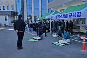 한방통신사 신유철기자 기자 | 거창군은 지난 28일 공공청사 내 화재 발생 시 초동 대응 능력 향상과 인명피해 최소화를 위해 김현미 부군수 주재로 거창소방서와 합동소방훈련을 실시했다. 이번 소방훈련은'공공기관의 소방안전관리에 관한 규정'에 따라 매년 진행하는 훈련이며, 청사 내 화재가 실제로 발생한 상황을 가정하여 진행됐다. 특히, 긴급상황에 신속하고 체계적으로 대처할 수 있는 초동 대응 능력을 향상하고 소방서와의 협업 체계를 구축하는 데 중점을 뒀다. 훈련에는 공무원과 거창소방서 등 총 300여 명이 참여했으며, △화재 신고와 상황전파 △소화기 및 옥내소화전을 활용한 자위소방대의 초기 화재진압 △신속한 대피 △응급조치 등 상황별 대처 능력 배양에 중점을 두고 이뤄졌다. 또한, 화재 대피 및 진화 훈련을 마친 후에는 직원들을 대상으로 소화기 사용법과 심폐소생술(CPR) 교육 실습 체험을 실시했다. 이는 화재 발생 시 당황하지 않고 능동적으로 대처할 수 있도록 준비해 직원들의 호응과 관심도를 높이는 계기가 됐다. 김현미 부군수는 “이번 합동소방훈련을 통해 재난 대응 능력 향상과 화재 예방에 대한 경각