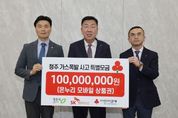 한방통신사 권영분기자 기자 | 청주시는 SK하이닉스㈜(대표 곽노정)가 22일 청주 가스폭발 사고 피해지원을 위해 충북사회복지공동모금회를 통해 1억원(디지털 온누리상품권)을 기탁했다고 밝혔다. 이날 임시청사 직지실에서 진행된 기탁식에는 이범석 청주시장, 박호현 SK하이닉스㈜ 부사장, 이민성 충북사회복지공동모금회 회장 등 관계자 8명이 참석했다. 성금은 지난 13일 발생한 흥덕구 봉명동 가스폭발 사고 피해 주민들의 조속한 일상 회복을 위해 디지털 온누리상품권 형태로 지원될 예정이다. 박호현 SK하이닉스㈜ 부사장는 “예기치 못한 사고로 어려움을 겪고 있는 지역 주민들에게 조금이나마 도움이 되길 바란다”며 “앞으로도 지역사회와 상생하며 기업의 사회적 책임을 지속적으로 실천하겠다”고 말했다. 이범석 청주시장은 “어려운 시기에 뜻깊은 나눔을 실천해 주신 SK하이닉스에 깊이 감사드린다”며 “기탁된 성금이 피해 주민들에게 신속하고 투명하게 전달될 수 있도록 최선을 다하겠다”고 밝혔다. 한편 SK하이닉스㈜는 지역 취약계층을 위한 사회공헌 활동을 지속적으로 이어오고 있다. 동절기 난방비 지원, 저소득 장