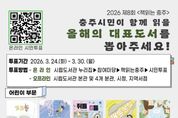 한방통신사 권영분기자 기자 | 충주시립도서관은 오는 30일까지 2026년 제8회 ‘책읽는 충주’ 독서운동의 대표 도서 선정을 위한 시민 투표를 실시한다고 24일 밝혔다. 올해 후보 도서는 시민들의 추천 도서 가운데 사서로 구성된 선정단의 심도 있는 검토를 거쳐 부문별 각 5권씩, 총 10권이 1차 후보로 선정됐다. 어린이 부문 후보 도서는 △꼬꼬붱(홍홍) △시간 유전자(김혜정) △쥐들 G들(강담마) △해든 분식(동지아) △호랑이를 부탁해(설상록) 등 5권이다. 일반 부문 후보 도서는 △박곰희 연금 부자 수업(박곰희) △양면의 조개껍데기(김초엽) △여름을 한 입 베어 물었더니(이꽃님) △젊음의 나라(손원평) △혼모노(성해나) 등 5권이 선정됐다. 시는 시민 투표 결과를 바탕으로 후보군을 압축한 뒤 도서관운영위원회의 최종 심의를 거쳐 부문별 각 1권씩 총 2권의 대표 도서를 확정할 계획이다. 투표는 충주시립도서관 누리집을 통한 온라인 참여와 시립도서관 본관 및 4개 분관, 시청, 관내 서점 등에 설치된 투표판에 스티커를 부착하는 방식으로 참여할 수 있다. 시 관계자는 “시민이