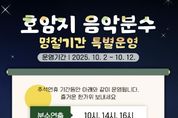 한방통신사 권영분기자 기자 | 충주시는 도심 속 이색 명소로 자리매김한 호암지 음악분수의 가을철 운영 일정을 조정해 시민과 관광객들에게 한층 다채로운 볼거리를 제공한다고 밝혔다. 호암지 음악분수는 물과 빛, 음악이 어우러진 환상적인 공연으로 시민들의 일상 속 특별한 휴식처이자 대표적인 야간 명소로 평가받고 있다. 시는 계절 변화와 일몰 시각 단축에 맞춰 10월 1일부터 11월 16일까지 야간 공연 시간을 기존 오후 8시 30분에서 오후 8시로 앞당겨 운영한다. 주간 공연은 평일 오후 2시와 4시, 주말에는 오전 10시, 오후 2시, 오후 4시로 기존과 동일하게 진행된다. 다만, 시설 유지관리를 위해 매주 월요일은 휴장하며, 강우나 강풍 등과 같은 기상 상황에 따라 공연이 중단될 수 있다. 특히, 추석 연휴 기간인 10월 2일(목)부터 10월 12일(일)까지 11일간은 휴장 없이 특별 운영된다. 이 기간에는 오전 10시, 오후 2시, 오후 4시에 각각 20분 동안 분수 공연을 선보이며, 야간에는 오후 8시에 화려한 조명과 레이저 연출이 어우러진 특별 공연이 20분간 펼쳐질 예