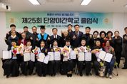 한방통신사 권영분기자 기자 | 배움의 시기를 잃어버린 지역주민들에게 만학의 꿈을 지켜온 단양야간학교(교장 이상곤)가 단양야간학교 통합교실에서 지난 11월 27일에 값진 스물다섯 번째 졸업식을 개최했다고 밝혔다. 이날 졸업식에는 2025년 1차 및 2차 검정고시에 합격한 졸업생 8명과 가족들, 야간학교 교사, 김문근 단양군수, 이상훈 단양군의회의장, 오영탁 충청북도의원 등 40여명 참석해 뜻깊은 졸업의 기쁨을 함께했다. 금년도 고등과정 검정고시에 합격하여 영예로운 졸업장을 받은 이 모씨(63세)는 “바쁜 일상으로 포기하고 싶은 순간들도 정말 많았지만, 선생님들의 애정 어린 가르침과 같이 배움을 함께한 학우들의 열정에 힘입어 오늘 의미있는 졸업장을 받을 수 있었다”며 고마움을 전했다. 지난 2000년에 처음 문을 연 단양야간학교는 25년의 세월 동안 변함없이 자리를 지키며 배움에 목마른 주민들의 갈증을 해소하고, 더 높은 길로 인도하는 평생학습의 등대 역할을 충실히 수행하여 왔다. 야간학교 자원봉사자 선생님들과 학생들의 꾸준한 노력의 결과, 금년도 졸업생을 포함하여 누적 졸업생이 200명(총 201명)