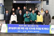 한방통신사 김성의 기자 | 광산구의회가 29일 광주송정역 앞에서 ‘광주송정역 광장 확장 사업’을 국가사업으로 추진할 것을 촉구하는 성명서를 발표했다. 박해원 의원(더불어민주당, 첨단1·2동)이 대표 발표한 성명서에 따르면, 광주송정역은 호남권 철도교통의 핵심 거점으로 하루 평균 이용객 수가 2022년 약 9,800명에서 2024년 약 1만 2천 명으로 증가했다. 반면 협소한 역사 규모와 낙후된 주변 환경으로 이용 불편이 초래되고, 도시의 첫인상과 지역 발전을 저해하고 있다는 지적이다. 광산구의회는 “총사업비 386억 원을 투입해 광주송정역 역사 면적을 약 두 배로 확장하는 증축 공사가 2028년 준공을 목표로 추진 중”이라면서도, “급증하는 수요와 향후 통합 특별시의 철도 거점 역할을 고려할 때, 역사 증축만으로는 한계가 있어 광장 확장과 기능 개선이 반드시 병행돼야 한다”고 주장했다. 이어 “광산구는 2022년 12월부터 국토교통부에 역사 확장 공사와 연계한 역 광장 개선의 필요성을 지속적으로 건의해 왔지만, 국가사업 대상에서 제외됐다”며 “구 자체 예산으로 일부 리모델링을 추진하기로 했으나, 이는 광주송정역