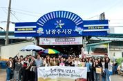 한방통신사 김성의 기자 | 광주문화재단은 추석을 앞두고 지역 전통시장에서 장보기 행사를 개최했다. 행사는 10월 1일 대인시장을 시작으로 10월 2일 남광주시장, 양동시장, 봉선시장 등 관내 4개 전통시장에서 진행됐다. 재단 임직원들은 온누리상품권을 활용해 명절 준비에 필요한 식재료와 생활용품을 구입하며 전통시장 소비 촉진에 힘을 보탰다. 이번 행사는 물가 상승과 경기 침체로 위축된 소비 환경 속에서 전통시장 이용을 장려하고, 소상공인의 매출 증대에 기여한다는 점에서 의미가 크다. 노희용 광주문화재단 대표이사는 “전통시장은 단순한 구매 공간이 아니라 지역민의 생활이 이어지는 중요한 기반”이라며, “이번 장보기 행사가 상인들에게 실질적인 도움이 되고 지역경제에도 활력을 주길 바란다”고 말했다. [뉴스출처 : 광주광역시문화재단]