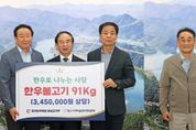 한방통신사 김성의 기자 | 임실군에 추석 명절을 맞아 따뜻한 나눔 기부 행렬이 이어지고 있다. 지난 23일 (사)전국한우협회 임실군지부(지부장 이창우)가 한우 91kg(3,450천원 상당)을, (사)대한한돈협회 임실군지부(지부장 김성두)가 한돈 260kg(3, 600천원 상당)을 임실군에 전달했다. 한우협회 이창우 지부장은“추석을 맞아 회원들의 뜻을 모아 소외된 이웃들에게 도움을 주고자 기부를 결정했고, 지역사회에 사랑을 나누는 역할을 다하겠다”라고 전했다. 한돈협회 김성두 지부장은“작은 나눔으로 건강하고 행복하게 명절을 보내길 바라고, 나눔을 꾸준히 실천하겠다”고 말했다. 또한, 제일・성진여객(회장 김진태)에서는 지역사랑상품권 1,000만원을 기부 물품으로 전달했다. 김진태 회장은 임실군 신평면이 고향으로 2021년부터 1,000만원씩 지역사회의 어려운 이웃들을 돕기 위해 꾸준히 기부를 지속하고 있다. 김진태 회장은“매년 고향에 나눔을 실천할 수 있어 큰 의미가 있다”며“조금이나마 따뜻한 명절을 보내시길 바란다”라고 전했다. 기부 물품은 사회복지공동모금회 전라