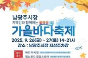 한방통신사 김성의 기자 | 광주 동구는 오는 26~27일 이틀간 남광주시장 공영주차장 일원에서 ‘활력장! 가을 바다 축제’를 개최한다고 밝혔다. 남광주시장 문화관광형시장 육성사업 일환으로 열리게 된 이번 행사는 광주 대표 수산물시장인 남광주시장을 전국에 알림과 동시에 지역 대표 축제로 육성하기 위해 마련됐다. 26일 오후 2시부터 농악놀이, ‘수산물 가요제’ 예선전, 전어잡이 체험 등 식전 행사가 펼쳐지며, 오후 5시 개막식을 시작으로 본격적인 행사가 열린다. 오후 6시부터는 가을 별미가 가득한 ‘바다 야시장’을 운영, 시민들의 발길을 이끌 예정이다. 이외에도 다양한 체험행사와 키즈존 등 다양한 콘텐츠로 채워지며 지역민들이 참여하는 ‘수산물 가요제’와 초대 가수 현진우의 공연도 예정돼 있어 모든 연령대가 함께 즐길 수 있는 축제가 될 전망이다. 이어 27일에도 역시 ‘바다 야시장’이 열리며, 문화동아리 경연 대회, DJ 댄스팀 공연 등도 펼쳐진다. 임택 동구청장은 “이번 행사를 통해 남광주시장에 새로운 활력을 불어 넣고 침체된 주변 상권이 활성화되길 기대한다”면서 “많은 주