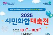 한방통신사 김성의 기자 | 익산시가 이리시·익산군 통합 30주년을 기념해 오는 10월 한 달간 '2025 시민화합대축전'을 개최한다고 24일 밝혔다. 시민들이 일상에서 문화와 여가를 즐길 수 있도록 다양한 공연과 할인 행사, 시민 참여 프로그램 등이 마련됐다. 행정·문화·경제 전 분야를 아우르는 이번 대축전은 총 5개 분야, 33개 세부 사업으로 구성되며, 시민 모두가 주인공이 되는 화합과 참여의 장이 될 전망이다. 축전의 시작은 10월 3일 영등시민공원 특설무대에서 열리는 '시민의 날 기념식'이다. 시는 이날 통합 30주년을 맞아 지역사회 발전에 기여한 시민 6명을 '시민대상' 수상자로 선정해 시상할 계획이다. 기념식 후에는 KBS 전국투어 콘서트가 열려 시민화합대축전의 본격적인 시작을 알린다. 이번 무대에는 국내 최정상급 가수들이 대거 출연해 시민들에게 수준 높은 문화 향유 기회를 제공할 예정이다. 이 밖에도 축전 기간 중에는 시민화합가요제, 글로벌 플리마켓, 국제도그쇼, 보석대축제, 천만송이 국화축제 등 다양한 공연과 행사가 도심 곳곳에서 펼쳐진다. &nb