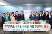 한방통신사 김성의 기자 | 완주군이 우석대학교 교양관에서 ‘천 원의 아침밥’ 사업 하반기 첫날 맞이 행사를 개최하고 본격적인 사업 추진에 나섰다. 22일 완주군은 우석대학교 교양관에서 천 원의 아침밥 사업 하반기 첫날 맞이 행사를 가졌다. 이날 행사에는 유희태 완주군수와 박노준 우석대 총장, 김정은 사회적협동조합 양지뜰 대표 등이 참여해 바쁜 학업과 생활로 아침식사를 거르는 대학생들에게 로컬푸드 식재료를 활용한 아침식사를 직접 전달하고, 격려의 메시지를 전달했다. 이번 행사는 하반기 사업의 성공적인 추진을 다짐하고, 학생들의 다양한 의견 청취와 함께 사업의 내실화를 기하기 위해 마련됐다. 학생들에게 제공될 메뉴는 상반기 추진된 만족도 조사를 반영해 지역산 쌀을 활용한 덮밥을 다양화하고, 과일 등 영양가가 높고 건강한 간편식 식단으로 구성한다. 특히, 직매장을 운영 중인 완주로컬푸드 협동조합에서는 판매되지 않은 신선한 농산물을 기부하고자 하는 농가를 적극 발굴 연계해, 사업에 힘을 보탤 계획이다. 완주군은 상반기 동안 진행된 사업을 도 먹거리통합지원센터와 함께 지속적으로 모니