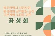 한방통신사 김성의 기자 | 광주광역시는 23일 오후 4시 광주광역시의회 5층 예결위회의실에서 ‘광주광역시 시민사회 활성화와 공익활동 증진을 위한 기본계획(제1차, 2026~2028)’ 최종보고회 겸 공청회를 개최한다. 광주시가 주최하고 광주시민사회지원센터가 주관하는 이번 공청회는 향후 3년간 광주 시민사회의 지속가능한 발전을 위한 정책방향을 최종 확정하기 전 시민사회 현장의 의견을 수렴하기 위해 마련됐다. 광주시는 2023년 ‘광주광역시 시민사회 활성화와 공익활동 증진 조례’를 제정하고, 2024년 7월 기존 ‘광주NGO지원센터’를 ‘광주시민사회지원센터’로 전환하며 시민사회 지원 기반을 확대했다. 올해는 전문가-행정-센터가 참여하는 ‘기본계획수립 전담팀(TF)’을 구성해 본격적인 연구에 착수했다. 전담팀(TF)은 지난 4월부터 수차례 논의와 자문을 거쳐 기본계획의 기틀을 마련했으며, 시민 및 시민사회 설문조사, 활동가 직급별 포커스그룹인터뷰(FGI) 결과를 반영해 비전과 목표, 추진전략을 구체화했다. 이번에 공개되는 기본계획은 ▲시민사회 기반과 역량 강화 ▲시민참여와 활동가 저변 확대 ▲공익활동에