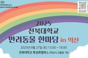 한방통신사 김성의 기자 | 반려동물과 시민이 함께 즐기는 축제가 반려동물 친화관광도시 익산에서 열린다. 익산시는 '2025 전북대학교 반려동물 한마당'이 오는 27일 오후 1시 전북대학교 익산특성화캠퍼스에서 다채롭게 펼쳐진다고 22일 밝혔다. 이번 행사는 전북대학교 수의과대학이 주최하며, 반려인과 시민 모두가 즐길 수 있는 풍성한 볼거리와 체험거리를 선보인다. 행사장에서는 △멍냥 그립톡 만들기 △발도장 추억액자 △반려동물 건강검진 등 체험 부스가 운영된다. 또 반려동물 산책룩 펫션쇼와 OX 퀴즈, 사진 콘테스트 등 무대 프로그램이 마련돼 현장 열기를 더한다. 아울러 전북대 수의과대학 박철 교수와 윤지선 교수의 강연으로 유익한 정보를 전달하고, '일일 수의사 체험'을 통해 미래 수의사를 꿈꾸는 청소년들에게 특별한 진로 경험도 제공한다. 방문객들에게는 리유저블백, 텀블러, 부채 등으로 구성된 기념 선물이 주어진다. 이 밖에도 부스별 스탬프 투어와 이벤트 무대 프로그램을 통해 제공되는 펫 드라이기, 자동 급식기, 강아지 유모차, 카시트 등 푸짐한 경품도 현장의 즐거움