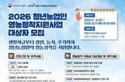 한방통신사 신다은기자 기자 | 영광군은 지역 농업의 미래를 이끌어 갈 청년 인력을 육성하기 위해 ‘2026년 청년농업인 영농정착 지원사업’ 1차 대상자를 오는 12월 11일까지 모집한다고 밝혔다. 신청 자격은 만 18세 이상~40세 미만의 청년 가운데 독립경영 3년 이하(또는 독립경영 예정자)인 농업인이며, 처음 농업에 도전하는 예비 청년농업인도 신청할 수 있다. 또한, 신청 세대의 소득·재산이 기준 중위소득 140% 이하일 경우에 한해 지원 자격이 부여된다. 선정된 청년농업인에게는 영농경력에 따라 월 90만~110만 원의 영농정착지원금이 최대 3년간 ‘청년농업 희망카드’로 지급되며, 영농 초기 생계비와 필수 경영비 등 정착 기반 마련에 활용할 수 있다. 또한, 최대 5억 원 한도의 후계농 육성자금(연 1.5%)도 함께 지원된다. 사업 신청은 농림사업정보시스템(Agrix)을 통해 온라인으로만 접수할 수 있으며, 신청서 제출 후 서류 평가와 면접 평가를 거쳐 2026년 1월 중 최종 대상자가 확정된다. 관련 지침과 세부 내용은 군 홈페이지 공고문에서 확인할 수 있다. 군 관계자는 “이번 사업이 청년들