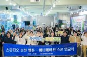 한방통신사 신다은기자 기자 | 순천시는 지난 5일 시민공익활동지원센터에서 ‘스튜디오 순천(Studio Suncheon)’ 웹툰, 애니메이션 스쿨 입교식을 개최하고, 지역기반 문화콘텐츠 핵심인재 양성을 위한 본격적인 교육을 시작했다고 밝혔다. ‘스튜디오 순천’은 지속가능한 인재풀 조성을 목표로 한 콘텐츠 전문 아카데미로, 웹툰·애니메이션 분야의 지역 콘텐츠 기업과 협력해 산업현장에 특화된 실무중심 교육과정인 ‘웹툰스쿨’과 ‘애니메이션스쿨’을 제공할 예정이다. 이번 교육은 평균 2 대 1의 경쟁률을 기록하며 높은 관심을 받았다. 웹툰스쿨은 앵커기업인 ㈜케나즈가 강사진 및 멘토진으로 교육을 총괄하며, 교육과정은 예비창작자반 6개, 프로반 1개 등 총 7개 과정으로 운영된다. 예비창작자반은 웹툰콘티, 웹툰PD, 웹툰작화 등 클래스별로 수업이 진행된다. 프로반은 글로벌 플랫폼 데뷔를 목표로 하는 전문작가 양성 과정으로 맞춤형 프로듀싱, 개인 작업공간 제공 등 원고 제작 과정을 지원한다. 애니메이션스쿨은 순천 입주기업들이 커리큘럼 설계부터 강의, 멘토링 전 과정을 주도한다.