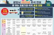 한방통신사 신다은기자 기자 | 광양시는 시민과 귀성객들이 안전하고 편안하게 명절을 보낼 수 있도록 오는 10월 3일부터 9일까지 7일간 ‘추석 연휴 종합상황실’을 운영한다고 밝혔다. 추석 연휴 종합상황실은 생활민원기동반, 재난상황반, 진료대책반 등 총 6개 반으로 편성되며 266명의 인력이 투입된다. 시는 각종 비상 상황에 신속하고 체계적으로 대응함으로써 시민들의 생활 불편을 최소화하고 안전을 확보할 계획이다. 생활민원기동반은 환경, 도로, 교통, 수도, 쓰레기 수거, 가로등 등 일상과 직결된 민원을 집중 처리해 연휴 기간 발생할 수 있는 불편을 신속히 해결한다. 재난상황반은 자연재해와 긴급 상황에 대비해 24시간 대응 체계를 가동, 시민 안전에 만전을 기한다. 진료대책반은 지역 응급의료기관과 협력해 24시간 응급실과 당번 의료기관·약국을 운영한다. 이를 통해 갑작스러운 응급 상황에도 신속한 의료 서비스를 제공, 시민들이 안심하고 명절을 보낼 수 있도록 지원한다. 상하수도 및 안전 관련 민원은 전문업체와 협력해 원활히 처리하며, 시민 편의를 위해 병·의원 및 약국 운영 일정과 생활민원 관련 정보는