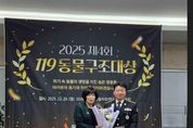 한방통신사 신다은기자 기자 | 전남소방본부는 순천소방서 119구조대 소속 양달승 소방위가 동물구조 활동에 기여한 공로를 인정받아 ‘2025년 12월 119동물구조대상’을 수상했다고 밝혔다. ‘119동물구조대상’은 사단법인 동물자유연대가 주관하는 포상으로, 동물 보호와 구조에 헌신한 소방기관과 소방공무원에게 감사의 뜻을 전하기 위해 마련됐다. 시상식은 12월 29일 오전 11시, 서울 성동구 동물자유연대에서 개최됐으며, 양 소방위는 감사패와 상금 500만 원을 받았다. 양달승 소방위는 2002년 소방공무원으로 임용되어 약 23년간 구조 현장을 지켜온 베테랑 구조대원으로, 최근 1년간 52건의 동물구조 출동을 수행하며 위험한 상황에서도 침착하고 세심한 구조 활동으로 사람과 동물 모두의 생명을 지켜왔다는 평가를 받고 있다. 특히 전남소방은 지난해(2024년) ‘119동물구조대상’에서 여수소방서 소속 채영섭 소방위가 수상한 데 이어, 올해 양달승 소방위가 수상자로 선정되며 2년 연속 수상이라는 의미 있는 성과를 거뒀다. 주영국 전남소방본부장은 “위험한 상황에서도 신속하고 세심한 구조 활동을 통