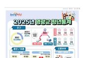 한방통신사 신다은기자 기자 | 영광군은 청년의 삶을 다각적으로 분석한 ‘2025년 영광군 청년통계’를 군 대표 누리집을 통해 29일 공표했다. 군은 지난 2024년 기준 영광군에 주소를 둔 18세 이상 45세 이하의 청년을 대상으로 통계를 작성했으며, 인구‧가구, 경제, 일자리, 창업, 복지, 건강 6개 부문 59개 항목으로 구성된다. 조사 결과에 따르면, 영광군 청년인구는 13,274명으로 군 전체 인구(52,098명)의 25.5%를 차지했으며, 청년 1인 가구는 1,693가구로 청년 가구(4,497가구)의 37.6%로 나타났다. 청년의 ‘24년 혼인건수는 413건으로 ’23년 대비 83건 증가했고, 이혼건수도 219건으로 ‘23년 대비 64건 증가했으며, 주택을 소유한 청년은 1,972명으로 청년인구(13,274명)의 10.3%로 집계됐다. 청년 취업자 수는 7,400명, 취업률은 69.9%로 나타났다. 구직 신청 건수는 1,049건이며, 이 중 고등학교 졸업자가 43.5%로 가장 큰 비중을 차지했다. 구직희망 직종은 경영·행정·사무직 28.5%이고, 보건·의료직이 8.
