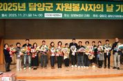 한방통신사 신다은기자 기자 | 담양군은 21일 담빛농업관에서 자원봉사자 200여 명이 참석한 가운데 ‘2025 담양군자원봉사자 기념식’을 열고 올해 지역에서 활동한 자원봉사자들의 노고를 격려했다. 이번 기념식은 지역사회 곳곳에서 활동한 자원봉사자들의 헌신을 기리고 자원봉사 문화 확산을 도모하기 위해 마련됐다. 행사는 유공자 표창패 수여, 성과보고, 역량강화 교육, 화합 한마당 순으로 진행됐으며, 다양한 프로그램을 통해 참여자들의 호응을 얻었다. 이날 재난 복구, 취약계층 돌봄, 지역 환경 개선 등 여러 분야에서 활동한 자원봉사자에 대한 표창이 이어졌고, 역량강화 교육과 화합 프로그램은 참석자 간 소통과 연대의 시간이 됐다. 정철원 담양군수는 “자원봉사자들의 따뜻한 실천이 담양군을 더 나은 지역으로 만드는 힘이 되고 있다”며 “앞으로도 자원봉사 활성화를 위한 지원을 지속하겠다”고 말했다. [뉴스출처 : 전라남도담양군]