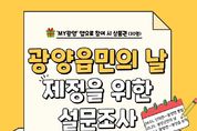 한방통신사 신다은기자 기자 | 광양읍민의 날 제정 추진위원회는 ‘광양읍민의 날’ 제정을 위해 오는 3월 17일부터 4월 12일까지 광양읍 주민을 대상으로 설문조사를 실시한다고 밝혔다. 이번 설문조사는 지역의 정체성을 강화하고 읍민 화합과 자긍심을 높이기 위한 ‘광양읍민의 날’ 제정을 추진하는 과정에서 많은 광양읍민들이 공감할 수 있는 의미 있는 날을 정하기 위해 주민 의견을 수렴하고자 마련됐다. 추진위원회는 지난 3월 6일 제1차 회의를 열어 광양읍민의 날 제정 필요성과 후보 일자에 대해 논의했으며, 주민 의견을 반영해 기념일을 정하기 위해 설문조사를 진행하기로 했다. 설문은 ▲읍민의 날 제정에 대한 찬성 여부 ▲기념일 선호 일자 등 총 2개 문항으로 구성됐다. 기념일 후보는 ▲4월 1일(인덕면, 광양면 통합일) ▲5월 25일(광양군민의 날 시행일) ▲8월 14일(광양군에서 광양읍 승격일) 등 3개 날짜 중 선택하는 방식이다. 설문조사는 모바일 앱 ‘MY광양’을 통해 참여할 수 있으며, 홍보물에 안내된 QR 코드를 이용해 앱을 내려받은 뒤 설문에 참여하면 된다. 앱을 통해