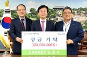 한방통신사 신유철기자 기자 | 진주문화원 김길수 원장은 지난 9월 30일 기업인의 방에서 지역사회 어려운 이웃돕기 성금 300만 원을 진주시복지재단에 기탁했다. 이번 성금은 최근 수해로 피해를 입은 주민들과 경제적 어려움을 겪고 있는 이웃을 돕기 위해 문화원장 취임식을 생략하고, 그 비용을 나눔으로 대신해 마련된 것이다. 김길수 원장은 “지역사회의 어려움을 함께 나누는 것이 당연한 책무라 생각한다” 며 “앞으로도 진주문화원이 지역민과 함께하는 열린 문화 공간으로 자리매김할 수 있도록 최선을 다하겠다”고 전했다. 조규일 시장은 “지역사회 어려운 이웃을 위한 김길수 원장님의 나눔 실천에 감사드린다”며 “기탁해 주신 성금은 도움이 필요한 이웃을 위해 소중히 사용하겠다”고 말했다. 한편, 진주시복지재단은 복지사각지대 해소와 시민들의 삶의 질 향상을 위해 다양한 복지사업을 추진하며, 지역사회 복지 향상과 나눔 문화 확산을 위해 지속적인 노력을 기울이고 있다. [뉴스출처 : 경상남도진주시]