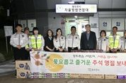 한방통신사 신유철기자 기자 | 박형덕 동두천시장은 9월 29일 추석 명절을 앞두고 동두천시 자율방범대를 방문해 위문품을 전달하고 지역 치안과 범죄 예방을 위해 헌신하는 대원들을 격려했다. 이날 위문은 자율방범연합대를 시작으로 독수리·백마·올빼미·태풍·번개 자율방범대 순으로 진행됐으며, 박 시장은 방범대원들의 애로사항과 건의 사항을 청취하고 주요 현안에 대한 의견을 나눴다. 박 시장은 “연합대를 포함한 9개 자율방범대 200여 명의 대원들께서 시민 안전과 범죄 예방을 위해 꾸준히 애써 주셔서 감사하다”라며“지역을 지키는 든든한 파수꾼으로서 자부심과 긍지를 가지고 앞으로도 활발히 활동할 수 있도록 시에서도 적극 지원하겠다”라고 말했다. 권태연 연합대장은 “최근 다양한 지역 행사로 대원들이 고생이 많았다”라며“늘 묵묵히 방범 활동에 임해 주시는 대원들께 감사드리며, 앞으로도 시민이 안심할 수 있는 동두천을 만들기 위해 함께 노력하자”라고 화답했다. 한편, 동두천시 자율방범대는 야간 방범 순찰과 청소년 선도·보호, 범죄 신고, 지역 행사 지원 등으로 부족한 경찰력을 보완하며 범죄 없는 안전한 지역사회를 만