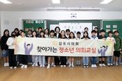 한방통신사 신유철기자 기자 | 김포시의회는 9월 29일 향산초등학교에서 5~6학년 자치회 학생들을 대상으로 ‘2025년 제3회 청소년 의회교실’을 열고, 지방의회의 역할과 민주주의 원리를 직접 체험할 수 있는 기회를 제공했다. 이번 청소년 의회교실은 의회 방문이 어려운 학교를 위해 시의회가 직접 찾아가는 방식으로 마련됐으며, 학생들이 의회의 기능과 역할을 쉽고 흥미롭게 이해할 수 있도록 다양한 체험 프로그램으로 구성됐다. 먼저 시의회 홍보영상을 통해 의정활동의 전반적인 내용을 소개한 뒤, 시의원과의 대화를 통해 지방의회의 기능과 중요성을 알아보는 ‘톡톡 토크콘서트’가 이어졌고, 이후 OX 퀴즈를 통해 학생들이 지방의회 관련 상식을 즐겁게 익히는 시간을 가졌다. 참여 학생들은 자치회 활동으로 키운 리더십을 바탕으로 적극적으로 질문하고 토론에 참여하며 지방의회에 대한 이해를 넓혔고, 특히 시의회를 대표해 참석한 김현주 의원은 학생들이 이해하기 쉬운 설명과 친절한 소통으로 공감을 이끌어냈다. 김현주 의원은 “청소년들이 의회의 역할을 가까이에서 배우며 민주주의의 소중함을 이해하고, 지역사회에 대한 관심을