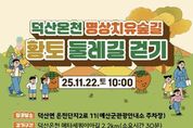 한방통신사 신태공 기자 | 예산군보건소는 11월 22일 오전 10시 덕산면 명상치유숲길에서 둘레길 걷기 행사를 개최한다고 밝혔다. 이번 행사는 오전 10시부터 12시까지 2시간 동안 진행되며, 출발지는 덕산면 온천단지2로 11에 위치한 예산군관광안내소 뒤 주차장이다. 걷기 행사 참가 희망자는 보건소(041-339-6076)로 전화 신청하거나 안내문 내 정보무늬(QR코드)를 통해 사전 접수하면 된다. 이번 행사는 치매극복 인식개선과 연계해 운영되며 △둘레길 걷기 △건강홍보관 운영 △다양한 만들기 체험 △흡연예방 버블공연 및 마술쇼 등 풍성한 체험과 볼거리를 제공한다. 명상치유숲길은 온천둘레길(1100m), 잣나무숲길(650m), 메타세쿼이아길(450m) 등 총 2.2㎞ 구간으로 조성돼 있다. 특히 구간마다 소나무, 잣나무, 메타세쿼이아 숲이 어우러져 있어 일상에 지친 마음을 치유하는 공간으로 사랑받고 있으며, 덕산온천 족욕장과 황톳길(530m), 마사토길(120m) 등이 함께 조성돼 걷기와 힐링을 동시에 즐길 수 있는 대표적인 걷기 코스로 자리매김하고 있다. 보건소 관계자는