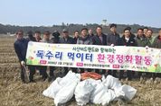 한방통신사 신태공 기자 | 서산시 부석면 창리, 마룡리, 간월도리 등 3개 마을 주민들로 구성된 천수만 생태관광협의회(회장 : 김만석)에서 매년 천수만 독수리 도래지에 대한 정화활동을 실시하고 있다. 서산시에 따르면, 27일 천수만 생태관광협의회 위원과 서산버드랜드 직원 등 20여명은 부석면 창리 독수리 도래지역 정화활동을 통해 고라니 뼈와 쓰레기 등 250kg이 넘는 폐기물을 처리했다고 밝혔다. 독수리 서식지에는 겨우내 서산버드랜드와 생태관광협의회에서 200여 마리의 고라니 폐사체 등을 먹이로 제공하여 뼈와 껍질이 산재해 있었고, 그동안의 강풍으로 인하여 많은 쓰레기가 농경지에 날아든 상황이었다. 천수만 생태관광협의회에서는 지난해부터 지역 주민들이 자체적으로 독수리 먹이터의 청소활동을 시작했으며, 서산버드랜드에서도 적극적으로 동참하면서 연례행사로 이어지고 있다. 김만석 천수만생태관광협의회장은 “지난 겨울 독수리는 우리 지역의 자랑이었다”며, “더 많은 철새들이 우리 지역을 찾아올 수 있도록 주민들의 힘을 모으겠다.”라고 밝혔다. 심영복 서산버드랜드사업소장은 “앞으로도 지역 주민과 함