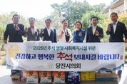한방통신사 신태공 기자 | 당진시의회는 29일 추석을 앞두고 지역 내 사회복지시설인 실버프리 송악과 삼봉노인복지센터를 방문해 따뜻한 명절 인사와 함께 위문품을 전달했다. 당진시의회 의원들은 시설 입소자들과 대화를 나누며 생활 환경을 살펴보고, 이어 종사자들과 만나 운영상의 어려움과 고충을 경청했다. 서영훈 의장은 “사회복지 현장에서 최선을 다하는 종사자 여러분의 노고가 지역 공동체를 더 따뜻하게 만든다”라며 감사를 표했다. 당진시의회는 정기적인 명절 위문을 통해 복지 현장을 살피고 이웃과 온정을 나누는 지역공동체 조성에 힘쓰고 있다. [뉴스출처 : 충청남도 당진시의회]