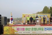 한방통신사 신태공 기자 | 아산시는 9일 곡교천 은행나무길에서 열린 ‘제11회 아산 은행나무길 전국 마라톤대회’가 성황리에 마무리됐다고 밝혔다. 이번 대회는 2025~2026년 아산 방문의 해를 맞아 전국 각지의 마라톤 동호인과 시민 등 4,500여 명이 참가했다. 하프·10km 코스에는 전문 마라토너들이 도전했으며, 5km 코스는 가족·연인 단위 참가자들이 함께 즐기는 시민 참여형 코스로 운영됐다. 특히 곡교천 은행나무길을 출발해 곡교천변을 따라 달리는 마라톤 코스는 황금빛 단풍으로 물든 은행나무길과 곡교천의 아름다운 풍경이 함께 어우러져 참가자들의 탄성을 자아냈다. 올해로 11회를 맞은 은행나무길 마라톤대회는 해마다 참가자가 증가하고 있다. 올해도 전년 대비 약 1,000명이 증가해 전국 마라토너들의 높은 관심과 인기를 다시 한번 입증했다. 김범수 아산시 부시장은 “황금빛 은행나무와 곡교천변을 따라 달리는 이번 대회에서 가을의 정취를 흠뻑 느끼셨길 바란다”며, “끝까지 완주하신 모든 참가자분들의 열정과 도전에 경의를 표하며, 오늘의 경험이 아산에서의 특별한 추억으로 남길 바란다”고 말했다.