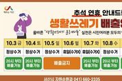 한방통신사 신태공 기자 | 충남 서산시는 추석 명절을 맞아 귀성객과 시민들이 쾌적하게 명절을 보낼 수 있도록 “추석 명절 쓰레기 관리 대책”을 10월 10일까지 추진한다고 밝혔다. 시에 따르면 관리 대책으로 추진되는 사항은 ▲추석맞이 국토 대청소 ▲추석 연휴 생활 쓰레기 수거 및 일정 안내 ▲환경종합상황실·기동처리반 운영 등이다. 먼지, 시는 추석 명절 전 깨끗한 도시 환경을 조성하기 위해 10월 2일까지 공직자, 지역사회 기관·단체와 함께 관내 전 지역을 청소하는 ‘추석맞이 국토 대청소’를 추진한다. 이번 대청소는 귀성객에게 쾌적한 귀성길과 생활 환경을 제공하기 위해 관내 도로변과 유동 인구가 많은 지역을 중심으로 진행된다. 추석 연휴 쓰레기 수거 일정은 10월 6일부터 7일까지 2일간은 생활 쓰레기가 수거되지 않으며, 그 밖의 기간에는 정상적으로 수거될 예정이다. 연휴 기간 시민들은 10월 5일과 6일을 제외한 기간에 저녁 8시 이후에 기존 배출 장소에 생활 쓰레기를 배출하면 된다. 시는 추석 연휴 생활 쓰레기 수거 일정을 10월 10일까지 서산시 누리집, 중앙호수공원