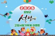 한방통신사 양호선기자 기자 | 양양군이 2026년 설 명절을 맞아 고향사랑기부제 참여 확산을 위해 '붉은 말의 해! 고향사랑기부제 설맞이 이벤트'를 실시한다. 이번 이벤트는 2026년 2월 8일부터 2월 28일까지 진행되며, 행사 기간 중 고향사랑e음 홈페이지를 통해 양양군에 10만 원 이상 기부하고 답례품을 선택한 기부자 가운데 선착순 100명에게 스타벅스 모바일 쿠폰(1만 원권)을 제공한다. 참여 방법은 고향사랑e음 홈페이지에서 양양군에 10만 원 이상 기부 후 답례품을 선택하면 자동으로 응모된다. 단, 이벤트 혜택 제공을 위해 SMS 수신 동의는 필수다. 당첨자는 3월 3일부터 순차적으로 모바일 쿠폰이 발송될 예정이다. 특히 2026년부터 고향사랑기부제 세액공제 혜택이 대폭 강화되면서 기부자 혜택도 크게 늘었다. 10만 원까지는 기부금 전액 세액공제, 10만 원 초과 20만 원 이하 금액에는 기존 16.5%에서 44%로 상향된 공제율이 적용된다. 이에 따라 이벤트 기간 중 10만원을 기부할 경우, 전액 세액공제에 더해 3만원 상당의 답례품, 스타벅스 모바일 쿠폰 1만 원(선착순)까지 받아 총