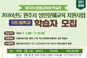 한방통신사 양호선기자 기자 | 원주시 학습관은 2026년 성인문해교육 지원사업으로, 학력 취득 기회를 놓친 성인을 대상으로 한 기초·디지털 문해교육 ‘더드림(The Dream)학교’를 본격 운영한다. 이번 교육은 기초 성인문해교육과 디지털 문해교육을 통합한 원주형 성인문해교육 지원사업이다. 단계별 한글 교육 더디딤 4개 반(13명)과 맞춤형 심화 교육 더채움 4개 반(32명)으로 구성된다. 교육과정은 국가평생교육진흥원 성인문해 교재를 활용한 단계별 한글 교육을 중심으로, 맞춤형 생활 문해(영어·수학·독서)와 창의적 체험활동을 병행해 학습자의 일상 적응력과 자신감 향상을 도모한다. 학습자 모집은 2월 20일까지며, 전화로 사전 상담 후 학습관을 방문해 신청하면 된다. 수강료는 전 과정 무료이며, 학습 교재도 제공된다. 자세한 사항은 학습관 평생교육팀으로 문의하면 된다. 한편 학습관은 성인문해교육에 대한 사회적 공감대 확산을 위해 건강문화센터 1층 로비에서 학습자 시화 작품 전시회를 운영하고, 배움의 성과를 시민과 공유하는 홍보 활동도 함께 추진할 계획이다. 윤석재 학습관장은 “이번 교육은