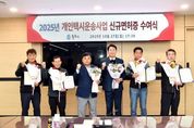 한방통신사 양호선기자 기자 | 원주시는 2025년 개인택시운송사업 신규 면허 대상자 4명을 확정· 발표하고, 이달 27일 시청 7층 회의실에서 개인택시 운송사업 신규 면허증 수여식을 개최했다. 시는 지난 8월 18일 개인택시운송사업 신규 면허 모집 공고를 통해 13명을 접수하고, 10월 23일 확정 공고를 통해 4명을 신규 면허 대상자로 발표했다. 원강수 원주시장은 “20년이 넘는 오랜 기다림 끝에 신규 면허를 받게 된 모든 분께 존경과 축하의 말씀을 전한다”라며, “앞으로도 시민들에게 안전하고 친절 [뉴스출처 : 강원도원주시]