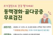 한방통신사 양호선기자 기자 | 강릉시보건소는 오는 4월 1일부터 3일까지 인구보건복지협회 강원도지회와 연계하여 동맥경화 및 골다공증 무료검진을 실시한다. 검사 대상은 만 40세 이상 강릉시민으로, 매일 100명까지 선착순으로 당일 현장 접수한다. 검진은 강릉시보건소 주차장에 마련된 이동검진차량에서 진행되며, 동맥경화도 및 혈관 협착도 검사와 골밀도 검사를 시행한다. 검사 결과 이상 소견이 있는 경우 2차 검사를 시행하고 병의원 진료를 안내할 예정이다. 김유영 건강증진과장은 "동맥경화와 골다공증은 초기 증상이 뚜렷하지 않아 방치할 경우 심뇌혈관질환과 골절로 이어질 수 있다"면서 “만 40세 이상 시민은 질환을 조기에 발견하고 건강 상태를 점검할 수 있도록 이번 검진에 적극적으로 참여해주길 바란다”고 말했다. [뉴스출처 : 강원도 강릉시]