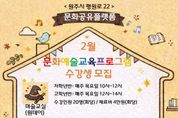 한방통신사 양호선기자 기자 | 원주시 문화공유플랫폼에서 ‘문화예술 교육 프로그램’ 수강생을 모집한다. 마술 교실, 보테니컬 아트, 도자기 빚기 등 총 3개 강좌가 개설되며, 이를 통해 아이부터 어른까지 모든 세대가 함께 배우는 기회를 제공할 계획이다. 신청 접수는 문화공유플랫폼 현장사무실 전화를 통해 선착순으로 진행된다. 원주시민은 별도의 수강료 없이 재료비만 부담하면 된다. 문화공유플랫폼 3층 공연장에서는 ‘일요 영화상영회’도 진행된다. 2월 1일은 ‘인사이드아웃’, 2월 8일은 ‘소울’, 2월 22일은 ‘짱구(동물소환 닌자 배꼽수비대)’가 상영되며, 입장료는 무료다. 원주시 관계자는 “문화공유플랫폼 운영 활성화를 위해 앞으로도 다양한 프로그램을 지속적으로 마련하겠다”라고 말했다. [뉴스출처 : 강원도 원주시]
