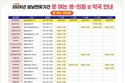 한방통신사 양호선기자 기자 | 횡성군은 설 연휴 기간(2.14.~2.18.) 중 의료공백을 최소화하고 응급상황에 신속하게 대응하기 위해 응급진료체계를 정상 운영 한다고 밝혔다. 횡성군보건소에 따르면 2월 17일 설날 당일에는 보건소에서 오전 9시부터 오후 6시까지 진료를 실시해, 연휴 기간 발생할 수 있는 경증 환자 및 응급 상황에 대비할 계획이다. 주민들은 설날 당일 갑작스러운 발열, 몸살 등 비교적 가벼운 증상이 있을 경우 보건소를 이용할 수 있다. 또한 지역응급의료기관인 횡성대성병원은 설 연휴 기간 동안 24시간 응급실을 상시 운영해 중증 응급환자 발생 시에도 차질 없는 의료서비스를 제공할 예정이다. 다만, 설 연휴 기간 중 문을 여는 병·의원 및 약국은 변동될 수 있으므로, 방문 전 반드시 전화로 운영 여부를 확인한 후 이용해 줄 것을 당부했다. 문 여는 병·의원 및 약국을 쉽게 찾는 방법은 다음과 같이 확인할 수 있다. ① 전화로 문의하세요! (국번없이 119 또는 129 또는 120) ② 어플리케이션에 검색하세요! (응급의료정보제공 E-Gen) &nb