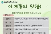 한방통신사 양호선기자 기자 | 원주시 동부복합생활지원센터는 오는 23일부터 ‘이 계절의 맛 (봄)’ 건강 요리 교실 프로그램 참여자를 모집한다. 이번 프로그램은 봄철 식재료를 활용해 면역력과 활력을 높이는 건강 요리 실습이다. 이를 통해 지역 주민들의 건강하고 균형 잡힌 식습관 형성을 돕는다. 4월 3일부터 24일까지 매주 금요일마다 총 4회에 걸쳐 영양 교육과 요리 실습이 운영된다. 교육은 오전 10시 30분부터 한 시간 동안 비대면으로 진행된다. 모집 인원은 20명이며, 신청은 3월 23일 오전 9시부터 27일까지 원주시 통합예약플랫폼을 통해 선착순으로 접수한다. [뉴스출처 : 강원도 원주시]