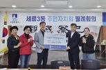 한방통신사 신유철기자 기자 | 수원시 권선구 세류3동 주민자치회는 지난 10월 1일, 세류3동 행정복지센터에 방문해 추석 명절 세류3동 불우이웃을 위한 100만원 후원금을 전달했다. 세류3동 주민자치회는 매년 명절마다 성금을 전달하여 관내 저소득 가정의 복지 욕구를 충족하고 소외감을 해소할 수 있도록 돕고 있다. 김정현 주민자치회장은 “추석 명절을 맞이하여 어려운 이웃들이 따뜻한 명절을 보내셨으면 하는 마음을 모아 후원을 준비하게 됐다”라며 “앞으로도 지역 공동체 화합과 발전을 위해 다양한 나눔 활동을 이어갈 예정이다”라고 말했다. 이진영 동장은 “항상 세류3동을 살기 좋은 동네로 만들기 위해 힘써주시는 주민자치회 위원분들이 있어 든든하고 감사하다”라며 “전달받은 후원금은 관내 취약계층을 위한 복지사업에 잘 쓰일 수 있도록 최선을 다하겠다”라고 밝혔다. [뉴스출처 : 경기도 수원시]