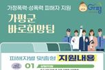 한방통신사 신유철기자 기자 | 가평군이 폭력 피해 위기가구를 선제적으로 발굴하고 지원하기 위해 ‘바로희망팀’ 운영에 본격 나서고 있다. 군은 오는 24일까지 2주간 집중 홍보 기간을 운영하고, 이어 5월 중 전담 상담실을 정식 개소할 계획이라고 14일 밝혔다. ‘바로희망팀’은 112에 신고된 가정폭력, 성폭력, 데이트폭력, 스토킹 피해자를 대상으로 초기 상담부터 심리치료, 맞춤형 복지 및 전문 기관 연계 등을 원스톱으로 지원하는 전담 대응 조직이다. 군은 이번 집중 홍보기간 동안 관내 여성단체, 노인회, 이장협의회, 복지관 등을 직접 찾아가며 현장 밀착형 홍보를 강화하고 있다. 특히 유관기관과의 비상연락망을 적극 가동해 지역사회 내 숨겨진 복지 사각지대와 위기가구 발굴에 주력할 방침이다. 찾아가는 홍보 활동을 마친 뒤에는 5월 중 ‘바로희망팀 상담실’을 공식 개소한다. 상담실이 문을 열면 피해자들에게 더욱 안정적이고 체계적인 맞춤형 통합 지원 서비스를 제공할 수 있게 돼 빠른 일상 회복을 도울 것으로 기대된다. 가평군 관계자는 “바로희망팀은 폭력 피해 발생 시 초기 상담부터 사후 관리까지 원스톱으로