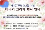 한방통신사 신유철기자 기자 | 영통구 영통2동은 영통2동 새마을문고가 제107주년 3·1절을 맞아 지역 주민과 함께 독립운동의 뜻을 기리고 나라사랑의 의미를 되새기기 위한 ‘태극기 그리기’ 행사를 운영한다고 밝혔다. 이번 행사는 오는 3월 18일까지 매일 오전 10시부터 오후 5시까지 영통2동 새마을문고에서 진행되며, 전 연령대 누구나 현장 접수를 통해 참여할 수 있다. 참가자들은 직접 태극기와 무궁화를 그리며 3·1운동 정신을 생활 속에서 체험하는 시간을 갖는다. 제출 시 룰렛 돌리기를 통해 소정의 상품도 증정할 예정이다. 영통2동 새마을문고는 앞으로도 독서문화 활동과 연계한 다양한 생활문화 프로그램을 통해 주민 참여의 장을 넓히고, 지역의 역사·문화 가치를 함께 나누는 활동을 이어갈 계획이다. [뉴스출처 : 경기도 수원시]