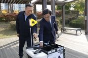 한방통신사 신유철기자 기자 | “AI(인공지능) 시대가 빠르게 오고 있는 만큼, 주민 누구나 일상생활에서 AI를 쉽게 접하고 사용할 수 있는 환경을 조성하는 것이 중요합니다” 진교훈 서울 강서구청장은 29일 마곡하늬공원에서 열린 ‘AI 기반 자율주행 로봇서비스 실증 시연회’에서 이같이 강조했다. 옆에 있던 ㈜로보티즈AI 이선영 이사는 자율주행 로봇을 소개하며 “타 자치구에서도 자율주행 로봇서비스를 운영하고 있으나, 강서구가 타 지역보다 규모나 활용도 면에서 큰 편”이라고 설명했다. 강서구는 지난 17일부터 마곡하늬공원에 자율주행 로봇 실증사업을 추진하고 있다. 주민들의 일상에 AI 서비스를 자연스럽게 스며들게 하는 게 목적이다. 이날 진 구청장은 공원 초입부터 로봇의 이동 경로를 따라 걸으며 실증사업 운영상황을 점검했다. 로봇서비스 이용 안내가 잘 돼 있는지, 자율주행 안전에 문제는 없는지 등을 꼼꼼하게 확인했다. 자율주행 로봇서비스도 직접 시연했다. 진 구청장이 공원 내 벤치에 부착된 QR코드를 촬영해 로봇을 호출하자 얼마 지나지 않아 자율주행 로봇이 모습을 드러냈다.