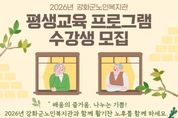 한방통신사 신유철기자 기자 | 강화군노인복지관(관장 윤심)이 오는 12일~16일, 어르신들의 활기찬 노후와 평생학습 기회 확대를 위한 ‘2026년 평생교육 프로그램’ 수강생을 모집한다고 밝혔다. 2026년 평생교육 프로그램은 강화군에 거주하는 만 60세 이상의 어르신을 대상으로 진행되며 ▲건강 증진 6과목 12강좌 ▲교양교육 13과목 24강좌 ▲여가․취미 18과목 30강좌 ▲정보화 1과목 3강좌 ▲기획프로그램 6과목 9강좌 등 어르신들의 관심과 수요를 반영한 다양한 프로그램으로 구성된다. 노인복지관은 이번 프로그램을 통해 어르신들이 일상에서 배움을 이어가고 사회적 교류를 확대할 수 있도록 지원한다는 계획이다. 접수는 1월 12일~16일까지 진행되며, 강화군노인복지관으로 방문 접수가 가능하다. 모집인원 초과 시에는 공정성을 위해 컴퓨터 추첨을 통해 수강생을 선발할 예정이다. 2026년 평생교육 프로그램은 오는 2월 2일~12월 11일까지 운영될 예정이다. 윤심 관장은 “평생교육 프로그램은 단순한 여가 활동을 넘어 어르신들의 자기 계발과 사회참여를 돕는 중요한 역할을 지닌다”며, “많은 어