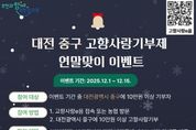 한방통신사 신태공 기자 | 대전 중구는 1일부터 오는 15일까지 연말맞이 고향사랑기부제 답례품 추가 증정 이벤트를 진행한다고 밝혔다. 이번 이벤트는 연말을 맞아 고향사랑기부제 참여를 확대하고 중구의 우수한 답례품을 널리 알리기 위해 마련됐다. 고향사랑e음 또는 농협을 통해 대전 중구에 10만 원 이상 고향사랑기부를 할 경우 자동으로 이벤트에 참여되며, 기부자에게는 10만 원까지 전액 세액공제(초과분 16.5%)와 함께, 기부금의 30% 상당에 해당하는 지역 답례품이 제공된다. 여기에 더해 기부 순번이 5의 배수에 해당하는 300명에게 답례품이 추가로 증정된다. 추가 답례품은 올해 신규로 입점한 지역 업체인 경화제면소와 사리원푸드의 1만 5천원 상당의 제품으로, 기부자들이 중구의 새로운 지역 상품을 경험할 수 있도록 구성됐다. 김제선 중구청장은 “연말을 맞아 따뜻한 나눔을 실천해주시는 분들게 감사의 마음을 담아 특별한 혜택을 준비한 만큼, 많은 분들의 관심과 참여를 부탁드린다”라고 말했다. [뉴스출처 : 대전시중구]