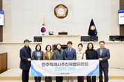 한방통신사 신유철기자 기자 | 용인특례시의회는 30일 의장실에서 원주시의회 원주특례시추진특별위원회의 방문을 받고 특례시 추진 및 운영 사례를 공유하는 시간을 가졌다고 밝혔다. 이번 방문은 특례시 추진을 준비 중인 원주시의회가 용인특례시의회의 제도 운영 경험과 의회 조직·권한 구조를 벤치마킹하기 위해 마련됐다. 용인특례시의회에서는 유진선 의장을 비롯해 이윤미 의회운영위원장, 김희영·이진규·기주옥 의원이 참석했으며, 용인특례시 자치분권과 관계자들도 함께했다. 원주시의회 원주특례시추진특별위원회에서는 손준기 위원장과 최미옥·문정환 의원 등 관계자들이 참석했다. 이날 일정은 상호 소개를 시작으로 ▲특례시 운영 현황 및 제도적 기반에 대한 설명 ▲특례시 추진 과정과 의회 역할 공유 ▲의회 시설 견학 순으로 진행됐다. 특히, 참석자들은 ‘지방자치법’과 ‘지방자치분권 및 지역균형발전에 관한 특별법’ 등 특례시 관련 법령 체계, 인구 100만 이상 대도시의 행·재정 수요 증가에 따른 특례시 도입 배경과 필요성, ‘특례시의회 사무기구 구성과 정책지원 전문인력 운영 사례 등에 대해 심도 있는 의견을 나눴다.
