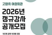 한방통신사 신유철기자 기자 | 고양특례시 여성회관에서 2026년 정규강좌 운영을 위한 정규강사진을 공개 모집한다. 고양시 여성회관은 지난 9월 고양시민 및 수강생 대상으로 실시한 수요조사 결과를 바탕으로 2026년도에 103개 강좌를 개설할 예정이다. 이에 따라 ▲컴퓨터⸱IT ▲외국어 ▲의상 ▲제빵⸱떡 등 10개 분야 103명의 전문 강사를 모집한다. 강사 지원 서류 접수 기간은 10월 27일부터 10월 30일까지이며, 고양시 여성회관 누리집을 통해 신청이 가능하다. 강사 지원자는 3개 강좌(주 14시간 강의 시간 이내)까지 지원할 수 있으며, 1차 서류 심사 및 2차 면접 심사를 거쳐 각 분야⸱지원 강좌별 고득점자 순으로 선발한다. 시 관계자는 “고양시 여성회관은 다양하고 질 좋은 강좌 운영을 통해 수강생들의 자기개발 및 삶의 질 향상을 위해 노력하고 있다”며, “앞으로 여성회관 정규강좌를 함께 이끌어갈 우수한 강사님들의 많은 지원을 바란다”고 말했다. [뉴스출처 : 경기도 고양시]