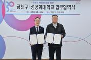 한방통신사 신유철기자 기자 | 금천구는 G밸리 혁신성장을 위해 지난 12일 금천구청 소회의실에서 성공회대학교와 업무협약을 맺었다고 밝혔다. 이에 따라 양 기관은 G밸리 기업 지원, 인재양성, 공동연구, 인프라 협력 등을 추진한다. 구체적으로 G밸리 기업 수요에 맞춰 교육 및 인턴십 프로그램 개발하고 G밸리 기업 재직자 직무능력 향상을 위한 교육을 운영한다. 대학의 교육과 연구를 기반으로는 공동기술을 개발하고 서비스와 조직을 혁신하는 한편 기술, 콘텐츠, 데이터를 기반으로 기업지원을 강화한다. 대학·지자체·기업이 보유한 인프라를 공동 활용해서 실질적인 협력사업도 추진한다. 특히 기술 고도화와 전문 인력 수급 부족 문제를 겪는 G밸리 중소기업들을 대상으로 한 지원 프로그램을 중점적으로 마련할 계획이라고 구는 강조했다. 구는 이번 협약은 성공회대학교가 보유한 연구역량을 G밸리 산업 구조와 연계해, 지역 기업이 필요로 하는 실무형 인재를 양성하고 기업혁신을 지원하는 데 의미가 있다고 설명했다. 실제로 성공회대학교는 정보통신(IT), 인공지능(AI) 등에 특화되어 있어 G밸리 산업 구조와 연계한 전문 인재