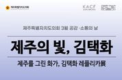 한방통신사 신유철기자 기자 | 제주특별자치도의회는 3월 19일부터 27일까지 도의회 의사당 로비에서 제주 출신 화가 김택화(1940~2006) 화백의 작품을 소개하는 ‘제주의 빛 김택화’ 레플리카전을 개최한다. 이번 행사는 '3월 공감·소통의 날' 행사와 연계해 마련됐으며, 도민 누구나 무료로 관람할 수 있다. 레플리카전은 원작을 정밀하게 복제한 작품을 전시하는 형태로, 김택화 화백의 대표 작품세계를 보다 가까이에서 감상할 수 있도록 기획됐다. 19일 오전 11시에 도의회 도민카페에서 열리는 개막식에는 이승연 김택화미술관장이 김택화 화백의 생애와 예술세계를 소개하고, 작품 이해를 돕기 위한 도슨트 프로그램도 진행할 예정이다. 김택화 화백은 제주에서 태어나 홍익대학교 서양화과를 졸업한 뒤 고향인 제주에서 활동하며 평생 제주 풍경을 화폭에 담은 제주 대표 서양화가다. 특히 한라산 소주 라벨의 원작자로도 널리 알려져 있으며, 제주 자연의 색채와 풍경을 화폭에 담아 제주 미술의 정체성을 보여준 작가로 평가받는다. 또한 제11회 대한민국미술전람회 서양화 부문 특선을 수상했으며, 한국 최고의 추상표현주의 그룹