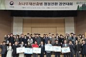 한방통신사 신유철기자 기자 | 울진군은 지난 12월 18일 산림청이 주최한‘소나무재선충병 청정전환 경연대회’에 참석해 최우수상을 수상했다. 이번 경연대회는 소나무재선충병 발생이 경미한 지역이 집단발생지로 악화되지 않도록 초기 단계에서 감시․예찰․방제 체계를 촘촘히 구축하고, 연차별 방제 로드맵을 고도화한 우수 사례를 발굴·확산하기 위해 마련됐다. 대회에는 소나무재선충병 경미 지역 전국 41개 지방자치단체가 참석한 가운데 울진군을 비롯한 서울특별시 서초구, 대구광역시 서구, 경기도 화성시, 강원특별자치도 강릉·삼척시, 충청남도 금산군, 전북특별자치도 부안군, 전라남도 화순·신안·영암군, 경상북도 봉화군, 경상남도 남해·함양군 등 14개 지방자치단체가 소나무재선충병 청정전환 로드맵을 발표했다. 대회 평가 기준은 지방자치단체별로 수립한 로드맵을 중심으로 ▲예찰강화 ▲방제전략의 단계적 목표설정 ▲이동단속 등 확산 차단 체계 ▲ 주민 참여·홍보 방안 등을 종합적으로 평가했으며 울진군은 각 평가 항목에서 높은 점수를 받아 최우수 기관으로 선정됐다. 이용권 산림청 산림재난통제관은“지역 실정을 반영한 실행력 있